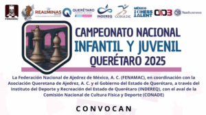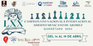 abril 16, 2025 @ 9:00 pm - abril 17, 2025 @ 12:30 amLXX Campeonato Nacional e Internacional Abierto Mexicano de Ajedrez Querétaro 2025