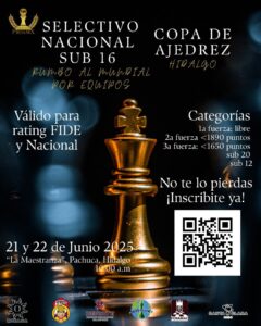 junio 21, 2025 - junio 22, 2025CAMPEONATO NACIONAL OLÍMPICO DE AJEDREZ SUB 16 HIDALGO, 2025.
