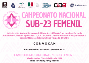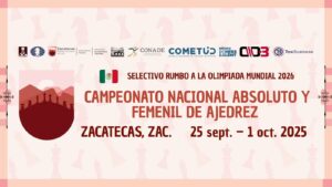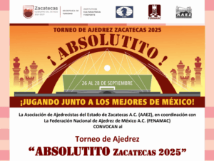septiembre 26, 2025 - septiembre 28, 2025CAMPEONATO NACIONAL ABSOLUTO Y FEMENIL DE AJEDREZ ZACATECAS 2025