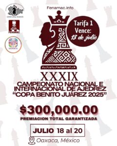 agosto 4, 2025 - agosto 9, 2025XXXIX CAMPEONATO NACIONAL E INTERNACIONAL DE AJEDREZ “COPA BENITO JUÁREZ 2025”