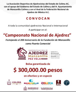 noviembre 12, 2025 - noviembre 17, 2025Campeonato Nacional de Ajedrez Manzanillo “Pez Vela”