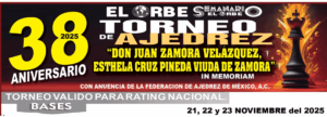 noviembre 30, 2025 - diciembre 7, 202538º Torneo de Ajedrez El Orbe “Don Juan Zamora Velázquez”